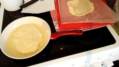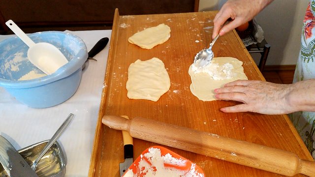 Zatim ga iseći na dužinu 4-5 sm. pa ga oklagijom razviti za pola sm. debljine u okrugle lepinje veličine tanjira.