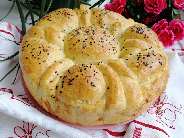 Potrebno je :   400 ml mleka 20 gr kvasca malo soli  600-700 gr brašna – T 400 meko 50 ml ulja   Još treba: malo semenki ..krupna so malo margarina ili maslaca 1 žumance   Priprema:   Zamesti mekše testo  i ostaviti da malo naraste. Izdvojiti 7 loptica koje malo obraditi rukom. Na pek papir jednu lopticu staviti …