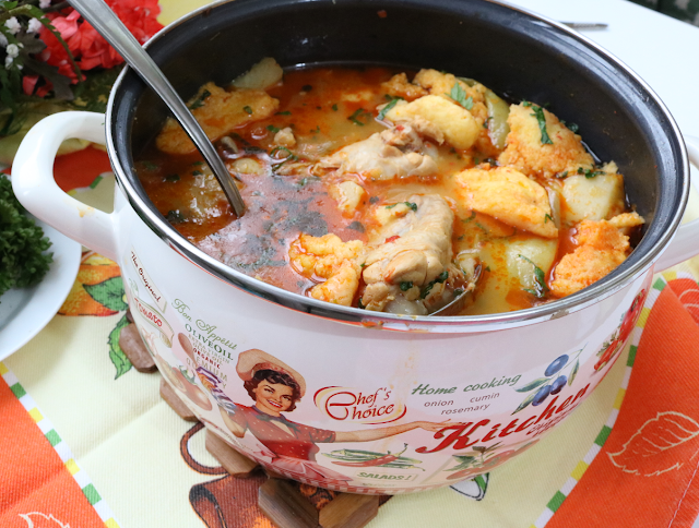 Kuvati da omekne meso i dodati knedle koje napravimo od jajeta brašna griza i malo ulja. Vaditi kašičicom.
