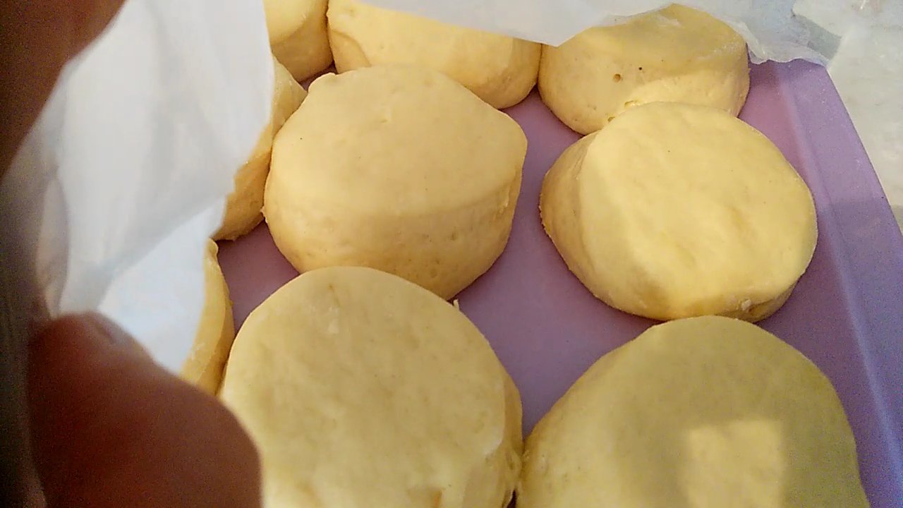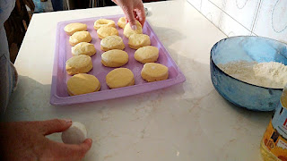 Testo razvući na malo pobrašnjiven sto oko prst debljine. Poslužavnik malo namazati uljem pa čašom vaditi krofne na njega. Pokriti opet folijom i krpom i ostaviti 20 min. na toplom da opet malo narastu.
