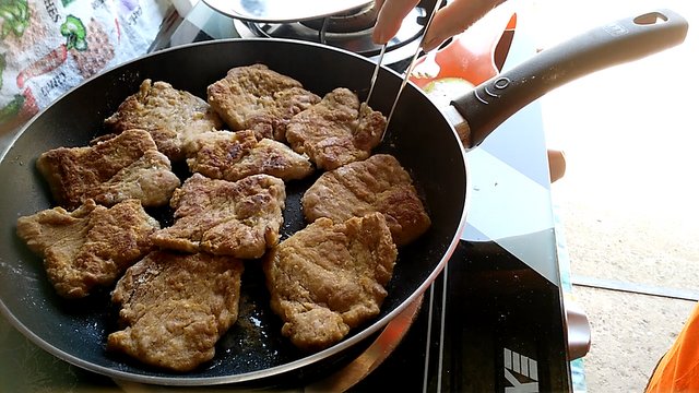 The water put seasoning and 1 clove chopped garlic so soak soy steaks and put on fire and barytes about 20 minutes. Boiled steak strain and span ispretiskati come out of water. And then poijedinačno roll in flour and arrange on a serving tray.