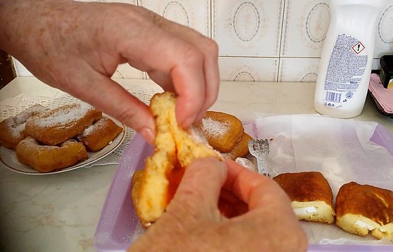 Posle 20 min. testo razviti za prst debljine i seći testo po želji i pržiti u ulju. Može se dodati džem ili ako želite slano sir kao što je prikazano u Videu.