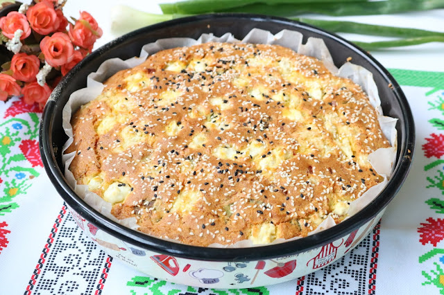 Umutiti 4 jaja dodati brašno i kukuruzno brašno, pomešano sa praškom za pecivo, jogurt,ulje, kiselu vodu sir…