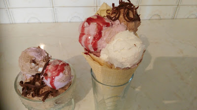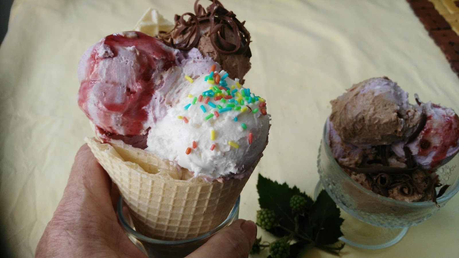 Ice cream spilled in a bowl put in the freezer for about 3 hours and then remove the spoon sladole the cones and savor …