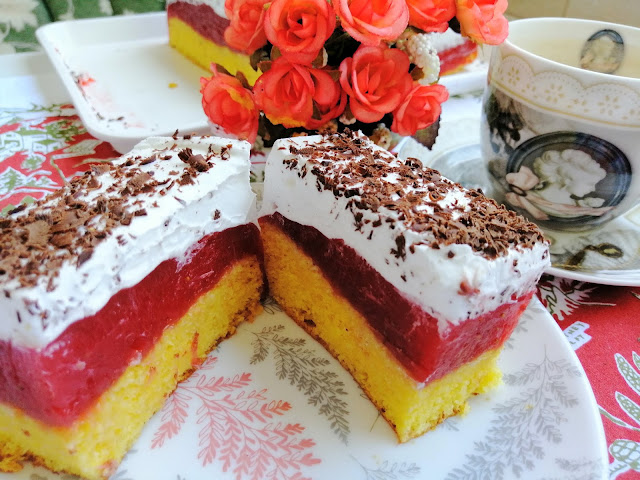 Ostaviti da se prohladi pa ga istresti na biskvit i dobro rasporediti.. Ohladiti pa odozgo staviti umućen šlag.. Dobro ohladiti i sladiti se…