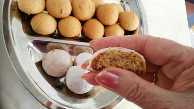 Melt the honey and butter and stir in the flour, add the egg yolks and egg, ECER, baking powder and knead smooth dough. Eject the small balls to press them a little and bake at 180 degrees C for about 15 min.