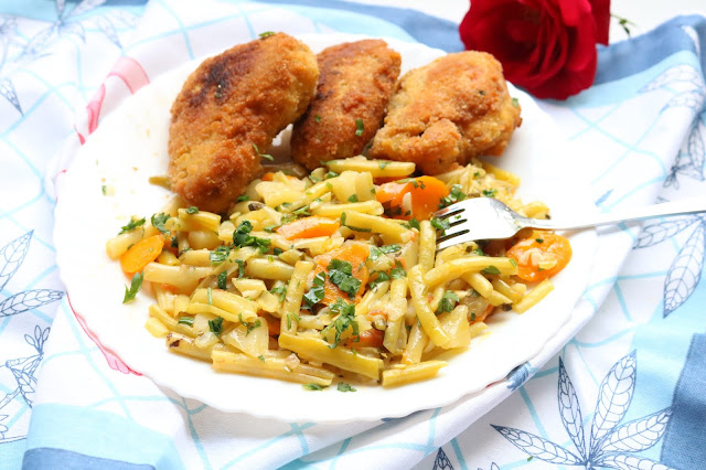 Na ulju propržiti seckan luk i šargarepu i sitno seckanu papriku.
