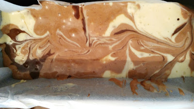 Sve dobro ismešamo pojedinačno. U pleh stavimo peh papir, pa naizmenice sipamo testo da nam kolač bude šaren. Pečemo oko 30 mi. na 180 stepeni C Odozgo može glazura od čokolade oli prah šećer