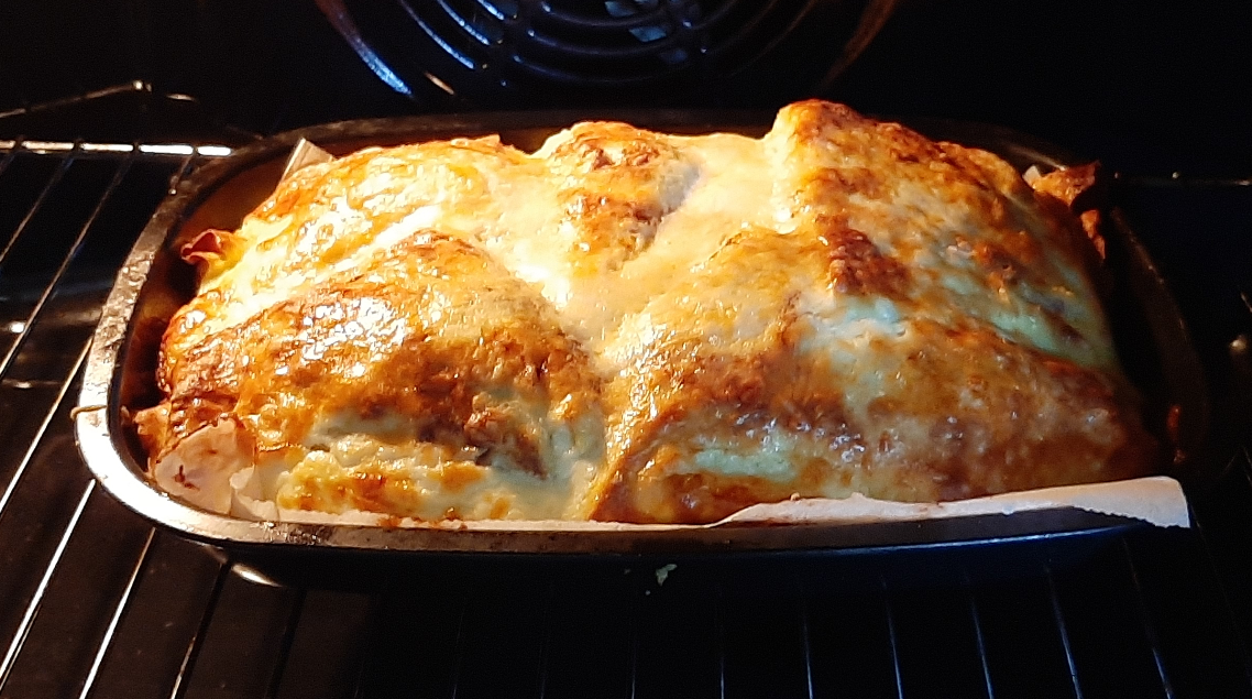 Svaku palačinku puniti presaviti i redjati u tepsiju koju ste obložili pek papirom ili podmazali uljem.