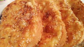 sir izdrobiti viljuškom, dodati pavlaku jaje i malo mleka. Hleb iseći na kriške pa umočiti u prpremljen fil, sa jedne i druge strane .pleh obložiti peh papirom za pečenje, pa redjati hleg. Ostatak fila rasporediti odozgo po hlebu. Posuti susamom. Peći na 200 stepeni C oko 20 min da porumeni. Služiti za doručak ili večeru uz jogurt. Prijatno!