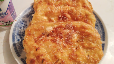 cheese crushed with a fork, add the egg cream and a little milk. Bread slice but a dip in prpremljen fil, with both sides .pleh incase bad luck with baking paper, and arrange hleg. The rest of the cue to deploy from above the bread. Sprinkle with sesame seeds. Bake at 200 degrees C for about 20 min to yellow. Serve for breakfast or dinner with yogurt. Enjoy!