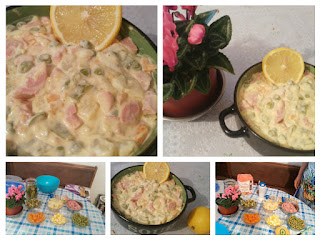 In a bowl add all the vegetables chopped, add hot dogs, mustard, mayonnaise, boiledeggs lemon pepper, lemon juice. All mix well and refrigerate Pleasant from grandma’s kitchen