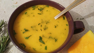 Sve dobro dinstati da omekne. Kad omekne dodati dulek sve izmešati pa sve još malo dinstati. Skloniti sa vatre pa štapićem za blendanje izblendati sve zajedno i vratiti na šporet. Dodati vino i supu i dodati ruzmarin i kuvati još oko 5 min. zatim dodati začin i ml. biber.