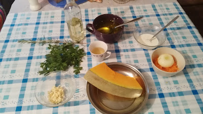 Dulek cut into thin slices or grate while it cool with a little water to soften. Fry finely chopped onion and add the grated carrots and chopped garlic. All good cook to soften. When added to soften all the pumpkins stir up a little stew.