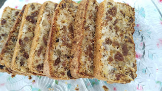 Whisk the eggs well with sugar mixer, add flour, baking powder, figs, raisins and chopped walnuts chopped figs, then opranmog zest and lemon juice and oil. All mix well. Pour into a narrow pan and bake at 200-180 degrees C for about 40 min.