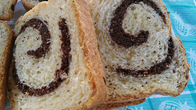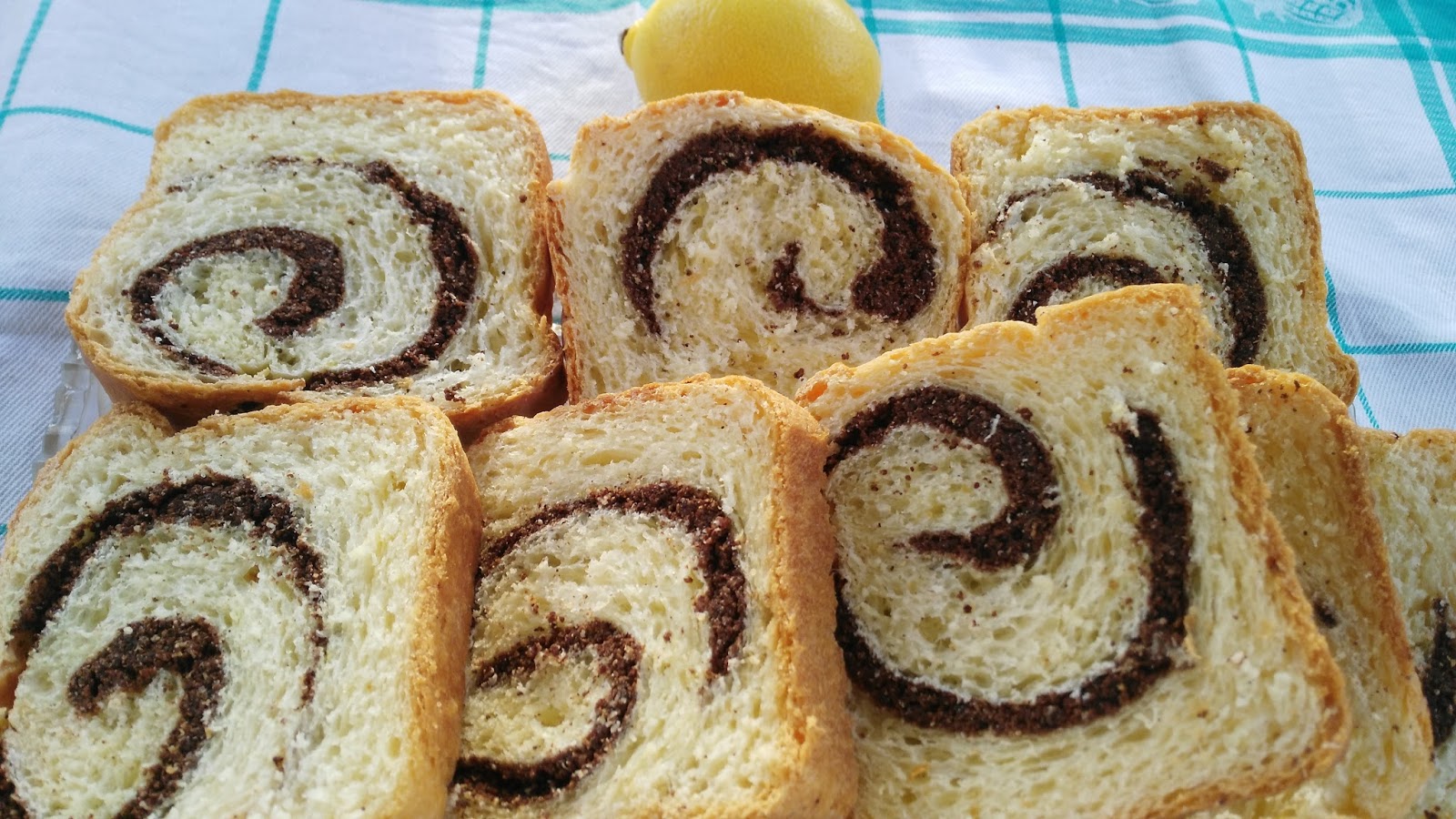 Mak pour with hot milk add 2 tablespoons of sugar. Testo developed for half a finger so stretched carob on it and twist it into a roll. Place the baking sheet in the gau that you put bad luck paper, cover and leave to rise for about 15 minutes. It can be lubricated yolk. Bake at 180 degrees C for about 40 min.
