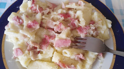 Fry onion finely and add the finely chopped bacon in a dry smoked meat, potato mash. The cooked flakes add mashed potatoes, then fried onions and bacon, then add salt and ml. Pepper. All good imešati. The meal was perfect taste and you should be sure to try