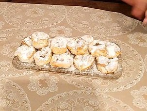 Yeast dissolved in milk and add 1 tablespoon of sugar. add flour. Mast whisk the egg well mixer and add the flour. Knead a soft dough. Apples clean the grate and add half the cinnamon and vanilla sugar and ground nuts as well as 100 grams of sugar. All mix thoroughly. Testile rolling pin developed for half a cm cut squares, but in each square to put the spoon apple bend all corners and squeeze the fist in the upper part as shown in the video. Agree to a baking sheet. Bake at 180 degrees C for about 30 min. Sprinkle with powdered sugar
