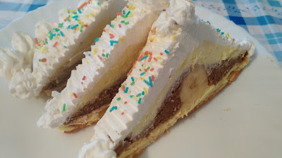 Na njega prvo premazati prvo pola svetlog krema, zatim po dužini u sredini rasporediti banane. Odozgo staviti tamni fil pa rasporediti, pa svetli fil i na kraju ukrasite šlagom. Ostavite tortu da se dobro ohladi pa poslužite. Ukus je fenomenalan kao sladoled topi se…