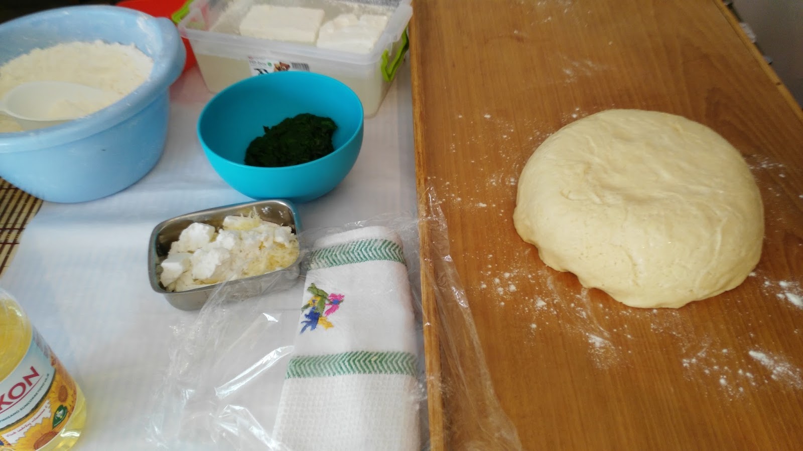 Fil: Sir dobro izdrobiti, dodati spanać Razvijenu koru premazati jednu polovinu kore filom stim što sredinu ostaviti praznu za dva prsta širine.