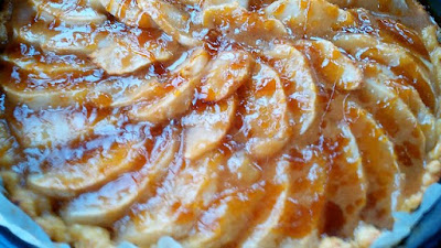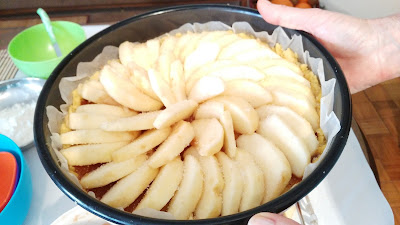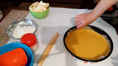 Dno testa namazati marmeladom, a jabuke iseći na kriške i redjati ih u krug da se popuni dno.
