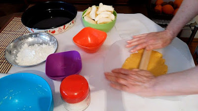 U pleh širine 24 sm. stavimo pek špapir obeležimo ivice pa na njega razvijemo testo tako da imamo i ivice sa strane na tepsiji prikazano na (VIDEU)