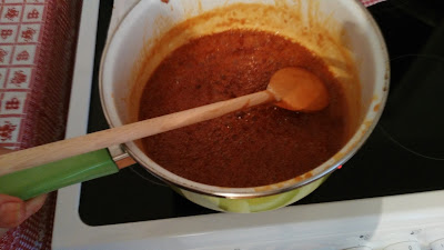 Zatim vratiti na šporet i mešati jer hoće da zagori sve dok se na površini ne stvore sitni gusti beli mehurovi. Na šporetu izgleda retko ali kad se ohladi jako se zgusne, malo prohladiti i sipati u malu teglu, može duže vreme stajati u friižideru.