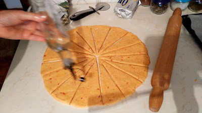 Ostaviti da malo naraste pokriveno. Razviti u tanku okruglu ploču i seći u trouglove ja sam sekla u 16 trougleva. Namazati malo uljem i uvijati u kiflice.