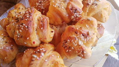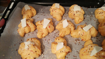 Ostaviti u plehu da malo porastu premazati još malo uljem, posuti semenkama i staviti na svaku kiflicu tanki listić margarina.