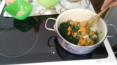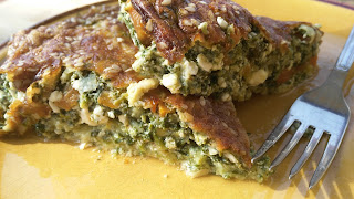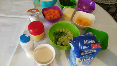 Praziluk iseći na kolutove ispržiti na ulju dodati seckanu šargarepu pa kad se ona malo proprži dodati spanać i beli luk. Skloniti sa šporeta. Sir izgnječiti pa dodati jaja, pavlaku i mali mleka pa to sjediniti sa spanaćem.