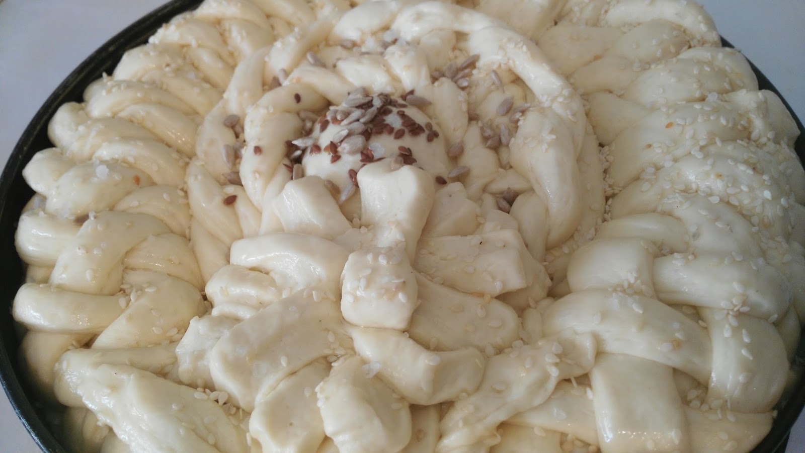 .Pogaču namažite uljem i pospite semenkama. Pecite na 180 stereni C 45-50 min