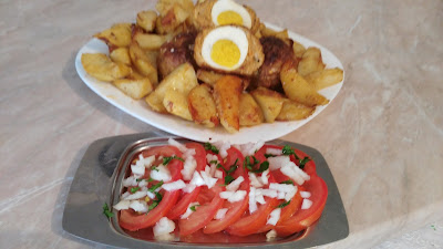 Uzeti u šaku malo mlevenog mesa rastanjiti u sredinu staviti oljušteno kuvani jaje, uviti u lopticu i redjati u podmazan pleh. Sve tako dok se ne utroši meso.