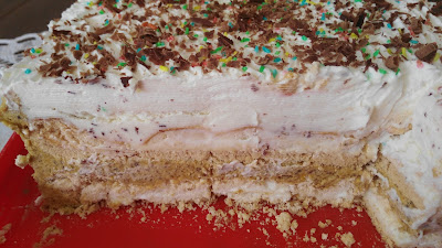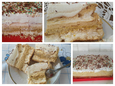 Prvu koru namazati filom pa je pokriti drugom malo pritisnuti. Filovati umućenim šlagom odozgo ostaviti da prenoći u frižideru i sutra dan seći . Sladite se dragi moji…