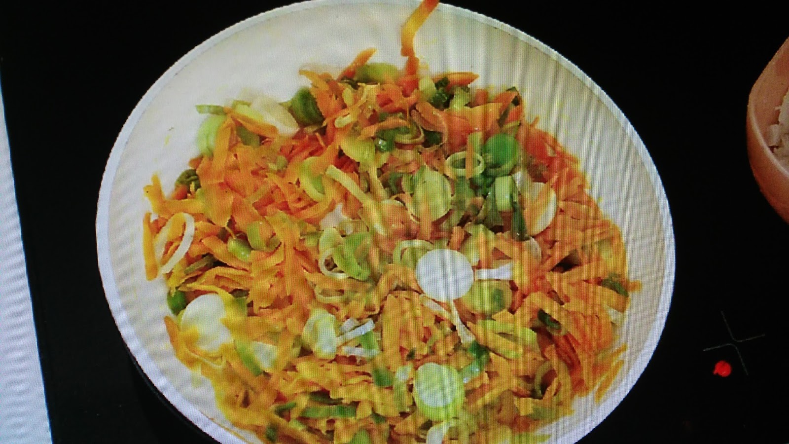 Praziluk iseći na kolutove pa ga propržiti dodati rendanu šargarepu, a zatim seckanog na sitno oslića pa i njega malo prodinstati. Dodati bibera.