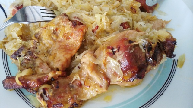 Kupus iseći na tanke rezance, pa dodati z meso. Dinstati još malo i na kraju staviti nekoliko lista lorbera i malo sitno ml. bibera.