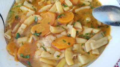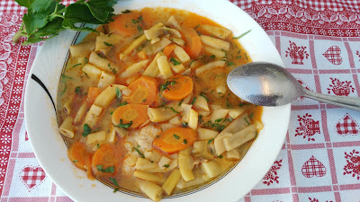 Na 1/2 šoljice ulja propržiti sitno seckan luk, sitno seckanu zelenu papriku i na krugove isečenu šargarepu.