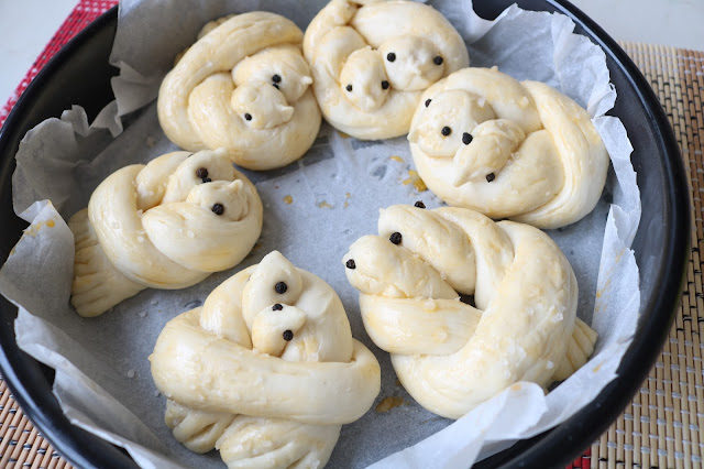Rukama formirati male kljunjice kao kod pileta na glavi a umesto očiju stavite po zrno bibera. Ostaviti da naraste, može se premazati mlekom ili žumancetom.