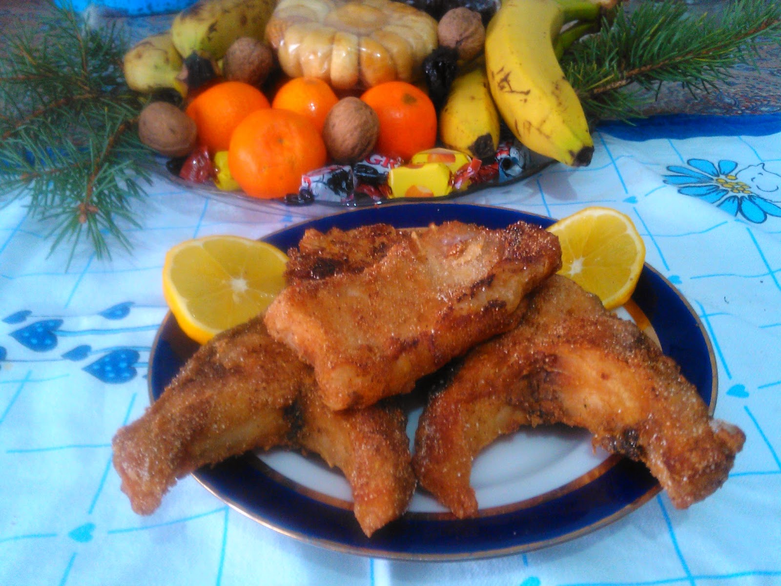 pržiti na ulju dok ne porumeni. Vaditi na papirne salvete da upije masnoću. Servirati sa kriškama limuna.
