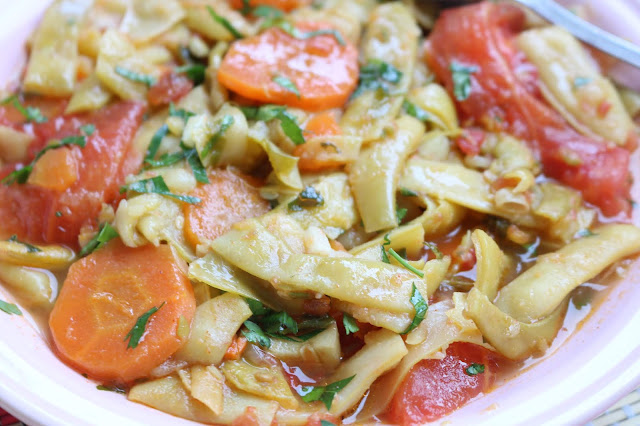 Dinstati je sa malo vode sve dok ne omekne, dodati začina malo aleve paprike i oljušten i nasečen paradajz.