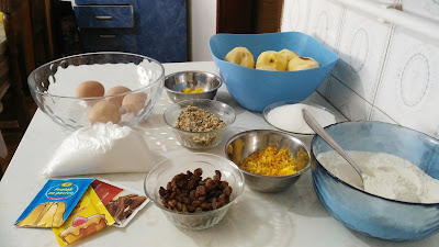 Izmešati cimet sa orasima pa razbacati po jabukama, zatim suvo grožnje i vanilu i staviti da se peku na 180 stepeni C oko pola sata. umutiti jaja, odvojiti belanca pa umutiti sa 8 kašika šećera pa dodati žumanca brašno sa pecivom, koricu limuna mleko ulje, pa kad se jabuke ispeku sipati na pečene jabuke i vratiti u rernu još 20 min da se ispeče.