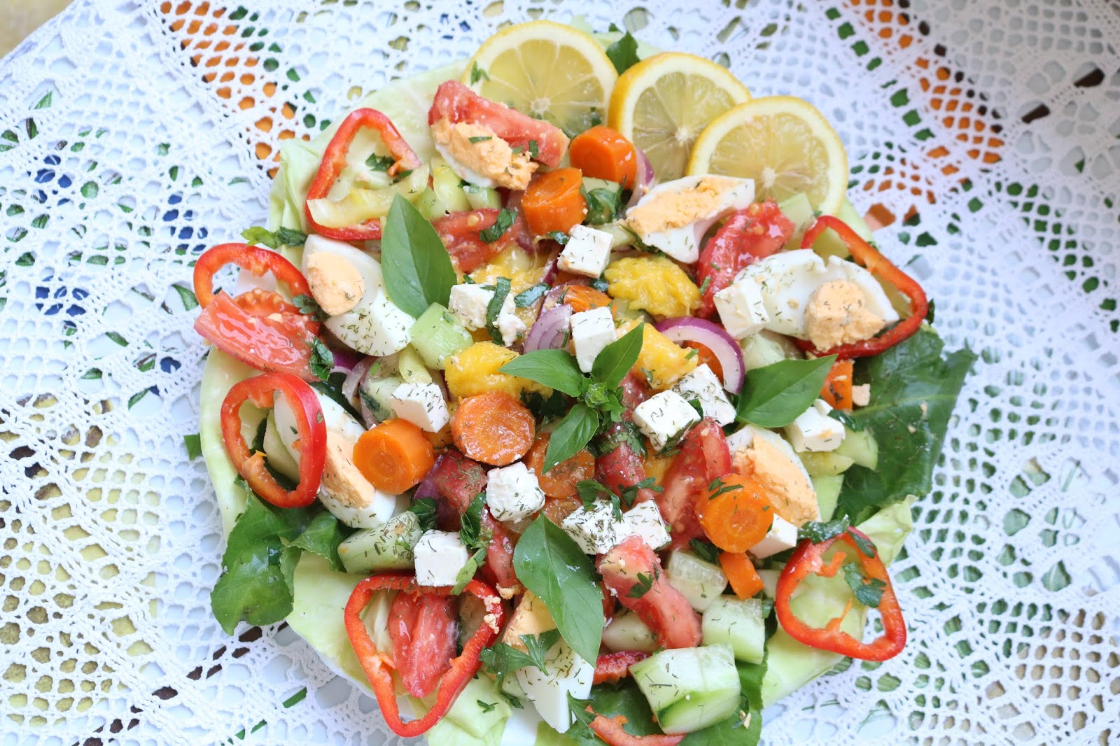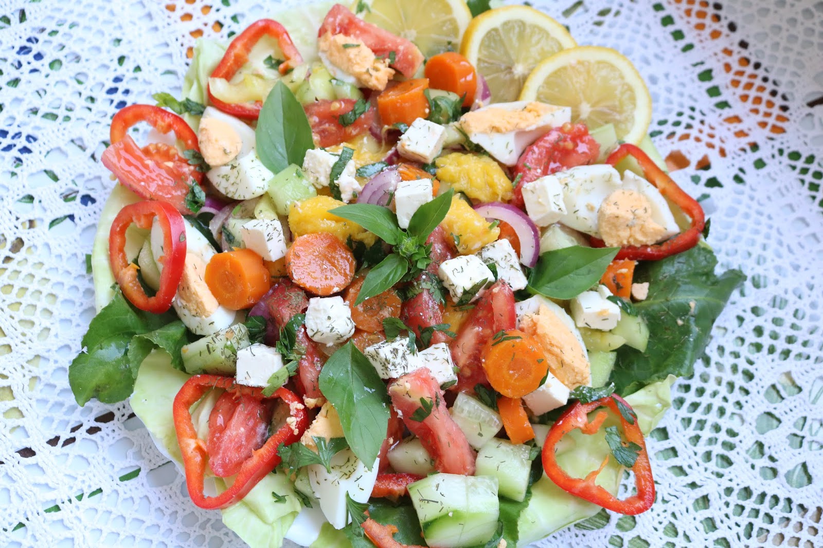 Salatu možete ukrasiti sa kockama krastavaca paradajza kuvanim jajima i malim kriškama sira.