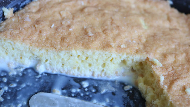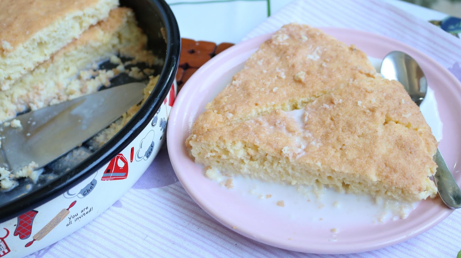 Tepsiju namazati uljem i posuti brašnom pa sipati umućeno testo izravnati peći na 200 stepeni C oko 20-30 min..