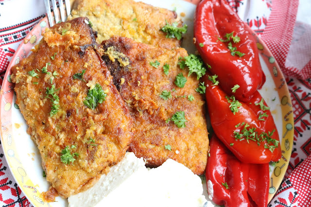 Brašno i prezle izmešati sa crvenom paprikom izmešati pa šnicle sa jedne i druge strane provuću kroz mešavinu brašna i istapkati rukama .