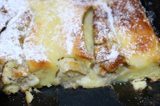 Pečenu palačinku posuti šećerom u prahu i vanilin šećerom. Sjajna sočna ..