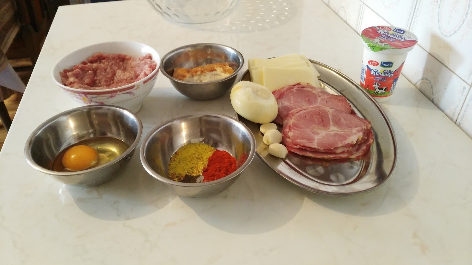 Luk isitniti crni i beli, pa dodati u meso, zatim koricu iscediti iz mleka, začin, biber i alevu papriku. Sve dobro izjednačiti.
