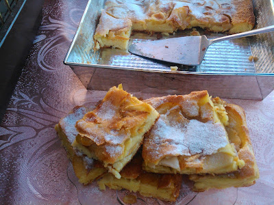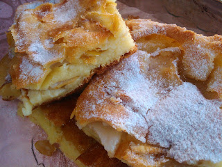 Mnogo puta nas mrzi praviti palačinke, treba dosta stajati za šporetom i razlivati jednu po jednu, dok vam deca igraju oko vas i zgrabe svaku novu koja se ispeče. Evo jedne palačinke od tog istog testa, samo razlivene u tepsiji, sa voćem i pečenom u rerni. Jako se brzo pravi, mnogo manje posla a zadovoljstvo ukusa je još bolji. Svaki zalogaj se topi i krcka u ustima a pečeno voće osvežava… Probajte!