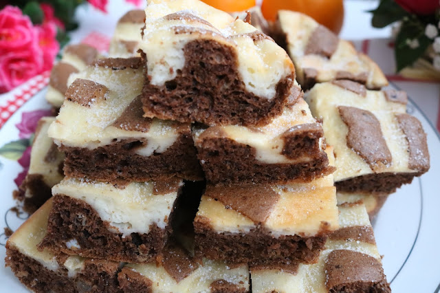 Umutiti jaja sa 3 kašike šećera dodati brašno, kakao, i prašak za pecivo prosejano, dodati ulje, kiselu vodu. Sve dobro izmešati i sipati u podmazan pleh. Sir dobro izgnječiti dodati jaje i kašiku skrobnog kukuruznog brašna.